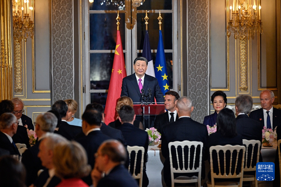 当地时间5月6日晚,国家主席习近平和夫人彭丽媛在巴黎爱丽舍宫出席法国总统马克龙和夫人布丽吉特举行的欢迎宴会。新华社记者 殷博古 摄当地时间5月6日晚,国家主席习2024-05-07